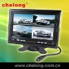 Car stand-alone LCD monitor with PAL,NTSC,AUTO (CL-7015F) 1.Screen size:7 inch(16:9 and 4:3) 2.Contrast:300:1 3.Brightness:250cd/M2 4.Viewing angle:L/R/U/D:60°/60°/40°/60° 5.Resolution:480(RGB)*234 Pixel 6.System:PAL,NTSC,AUTO 7.Power supply:DC12-32V 8.Power:About 5w 9.Visible area:154*86mm 10.Operation temperature:-20°C 70°C 11.Storage temperature:-30°C 80°C 12.Video:four-way video input,AV4 with trigger ,blue screen when no signal. 13.Rearview function:while no signal,the working condition will turn to the original surface.Built-in speaker. 14.Color option:Black and Silver grey 15.Abet Language:Chinese,English,Japanese,Chech 16.aspect szie:(L)171*(W)125*(T)20mm Accessories: AV and power supply adapter cable 1PCS Bracket 1PCS Sunshade 1PCS IR remote control 1PCS Headrest mount 1PCS English manual 1PCS